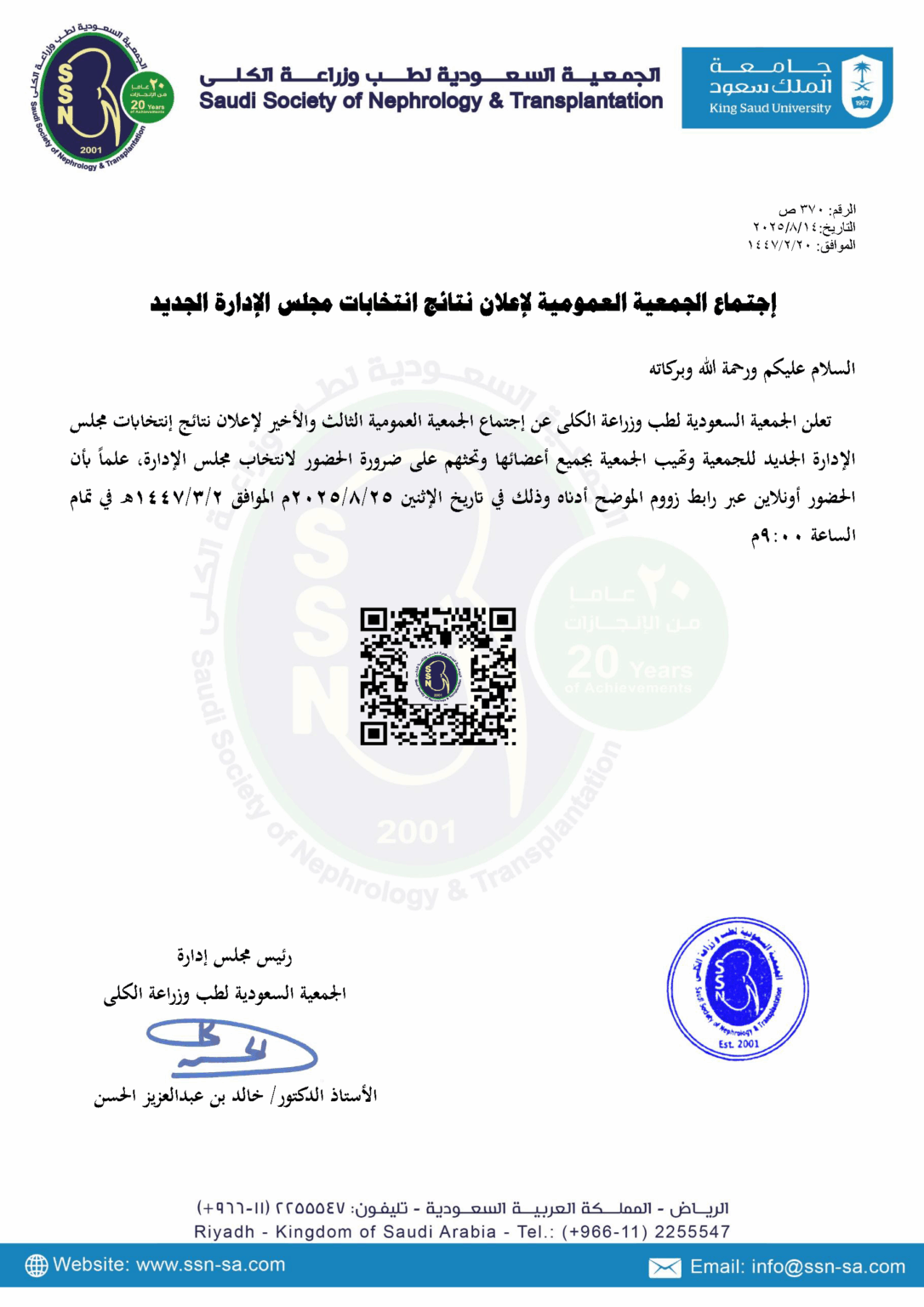 تأسست الجمعية السعودية لطب وزراعة الكلى في عام 2001 تحت مظلة جامعة الملك سعود (Ksu.edu.sa) والتي تعد مؤسسة تعليمية